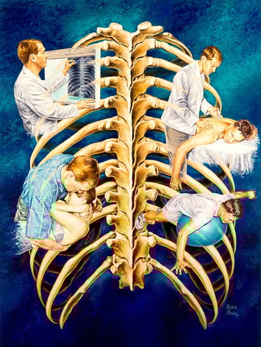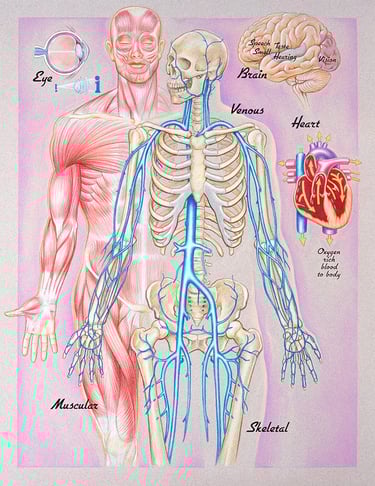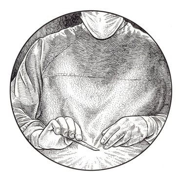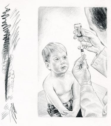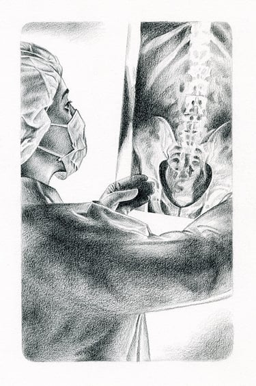 Drawings & paintings of highly detailed medical illustrations, created in 1989-1996 at a teaching hospital in Ft Bliss (El Paso) Texas. These were published in Medical Journals, introduced as evidence for court cases and used in teaching environments.