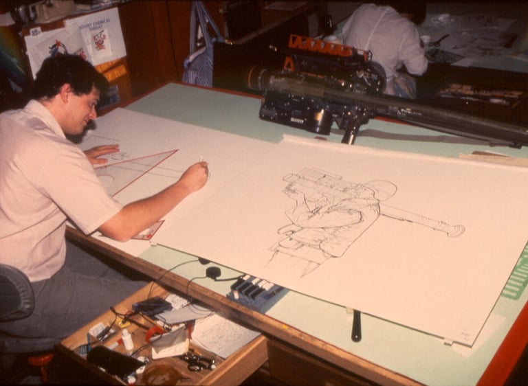 Drawing highly detailed technical military illustrations, from 1984-1988 in an old worn-out WW2 aircraft hanger. I never thought I'd be talking about it (40+ years later) but, it's was the start of what made me an all-around versatile, attention to detail-oriented illustrator.
